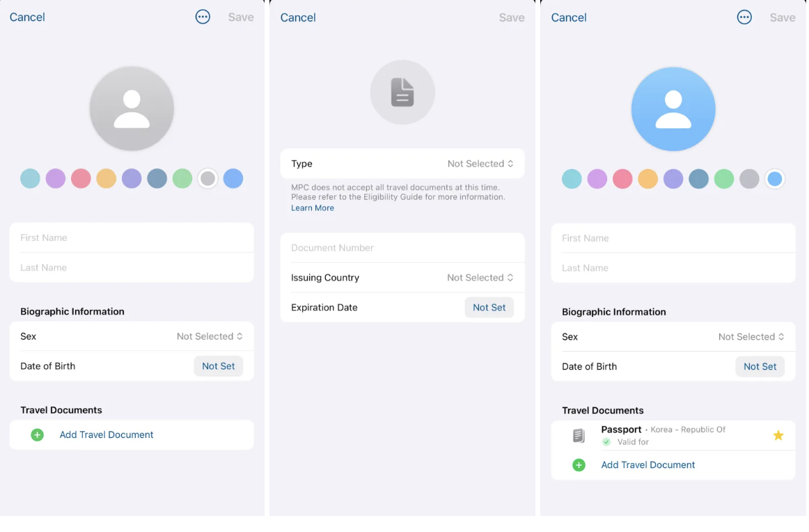여권을 핸드폰에 가까이 대면 자동 스캔 되지만, 직접 등록할 수도 있다.