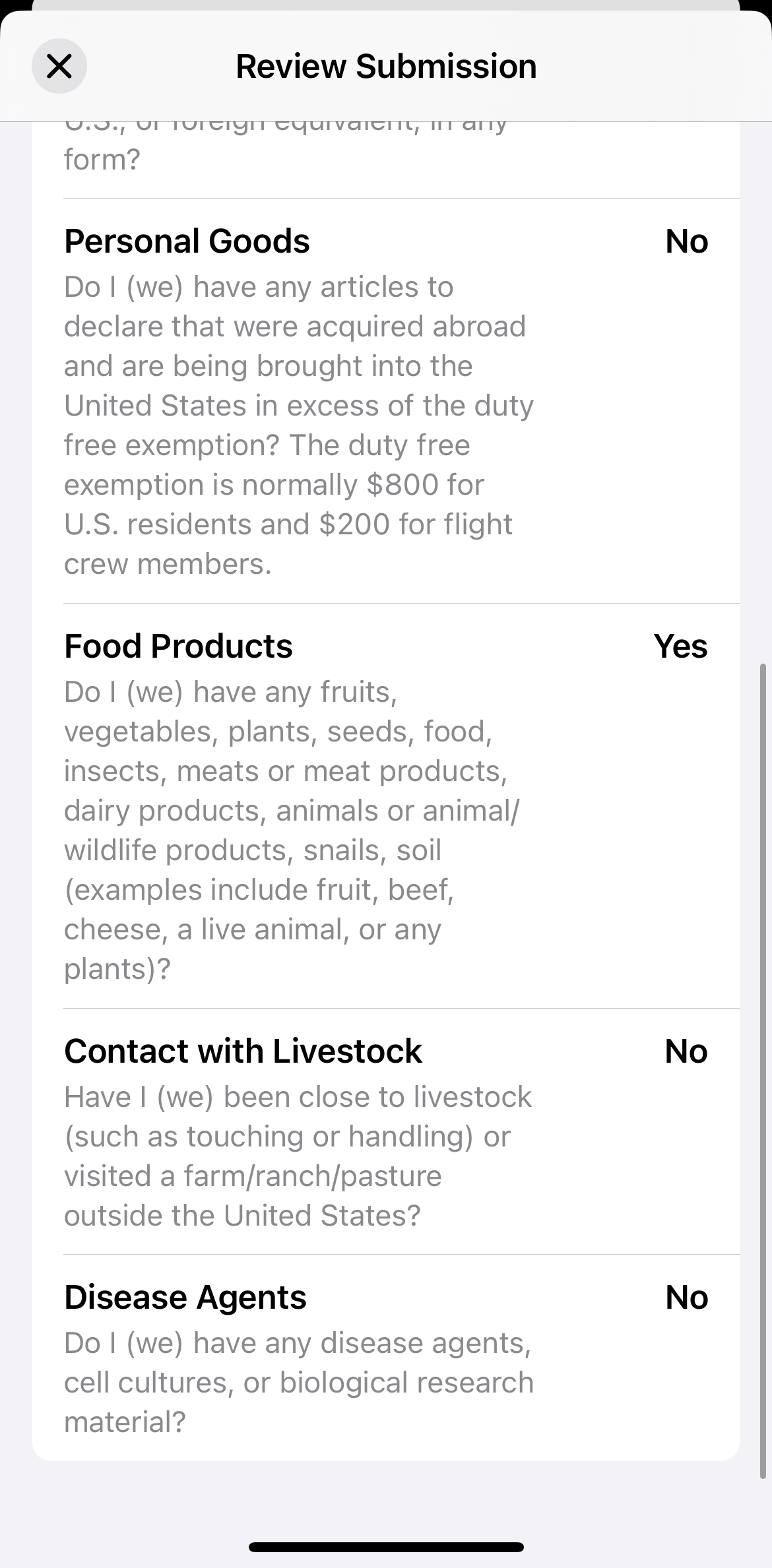 ( 입국심사 때 Food 있냐고 질문받아서 솔직하게 가지고 왔다고 하고,